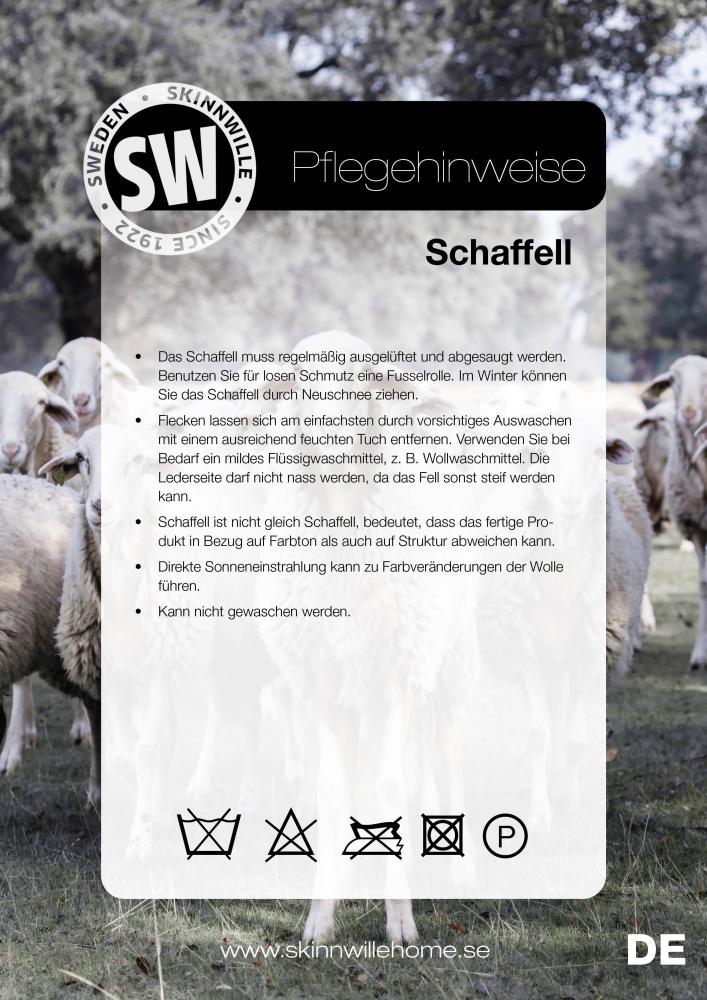 Die Felle werden mit dem umweltfreundlichen Färbeverfahren ECO-TAN™ gefärbt. Dadurch unterschreitet das Produkt die EU-Grenzwerte für Kinderartikel deutlich. Ein Schaffell gleicht nie dem anderen. Das bedeutet, dass das fertige Produkt in puncto Aussehen, insbesondere im Farbton und in der Struktur, abweichen kann.
