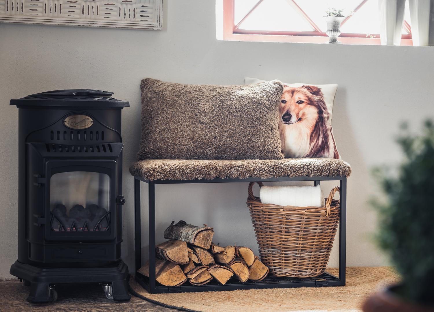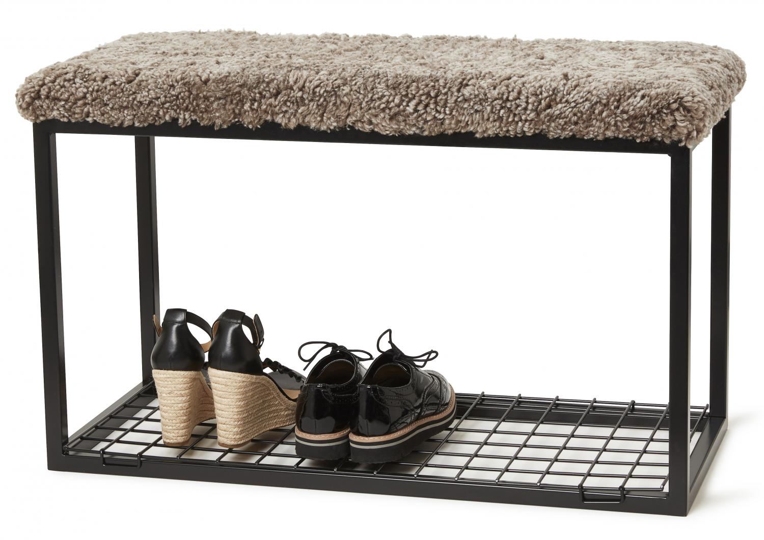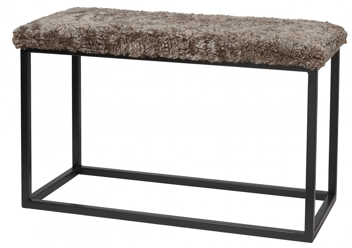 Hocker im klassischen skandinavischen Design. Kissen aus australischem Schaffell auf einem Stahlgestell. Kann als zusätzlicher Sitzplatz oder als ein stillvolles Extra verwendet werden.