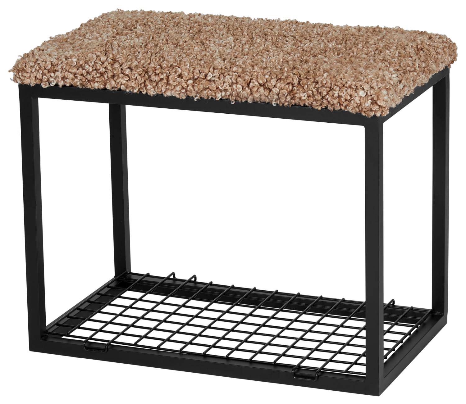 Kissen aus stilvollem Schaffellimitat auf einem Stahlrahmen. Kann als zusätzliche Sitzgelegenheit oder als schönes Innendetail verwendet werden.